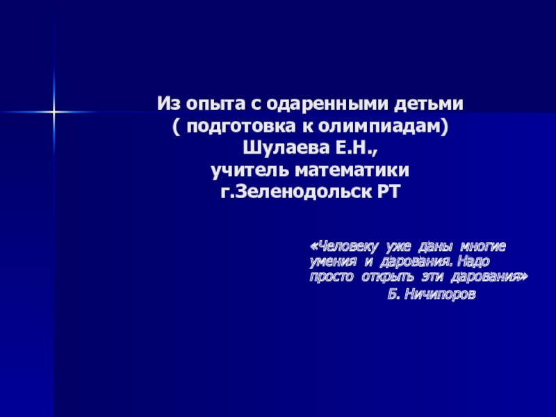 «Человеку уже даны многие умения и дарования. Надо просто открыть эти дарования»