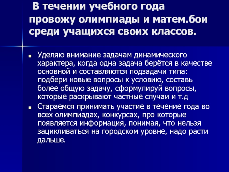 Слайд 18 В течении учебного года провожу олимпиады и матем.бои среди учащихся