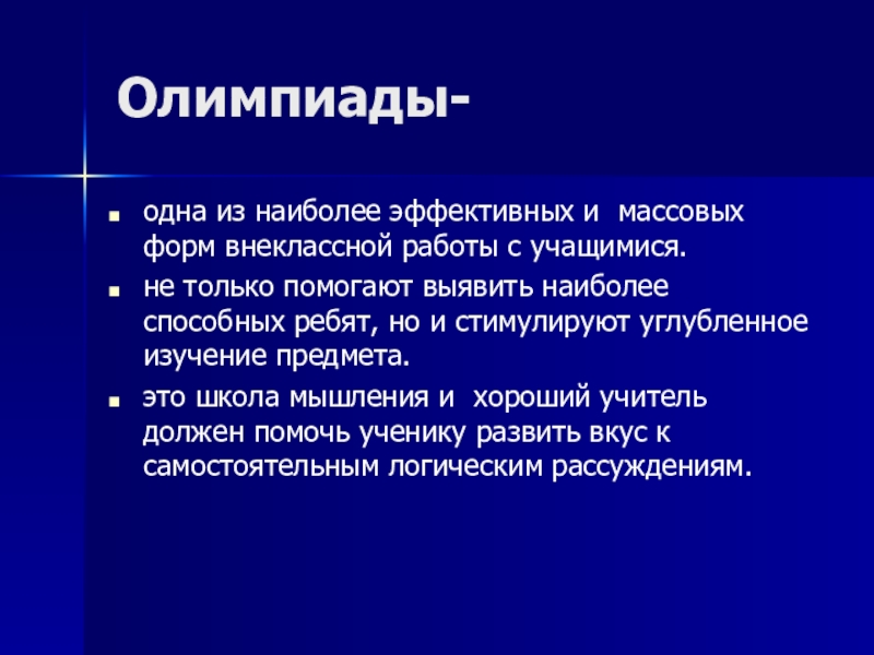 только помогают выявить наиболее способных ребят, но и стимулируют углубленное изучение предмета.