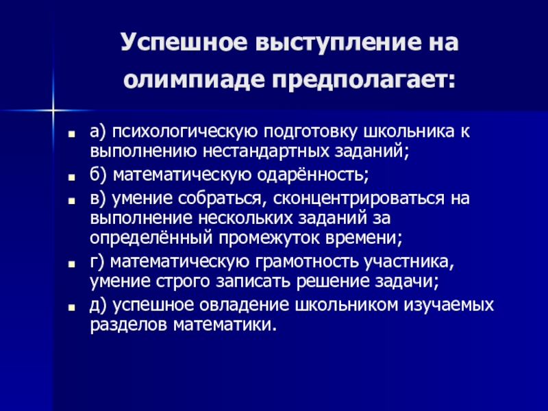 Слайд 15Успешное выступление на олимпиаде предполагает: