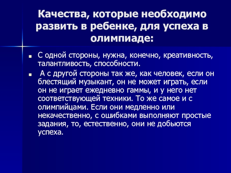Слайд 14Качества, которые необходимо развить в ребенке, для успеха в олимпиаде: