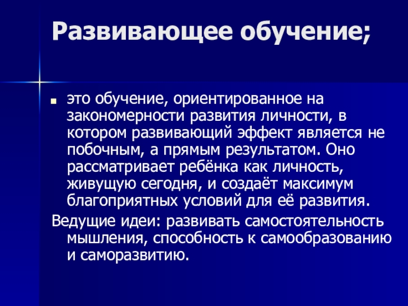 это обучение, ориентированное на закономерности развития личности, в котором развивающий