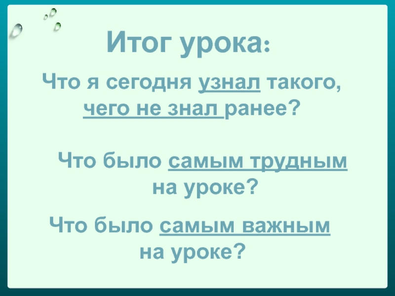 Итог урока: