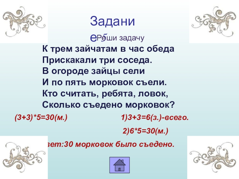 (3+3)*5=30(м.) 1)3+3=6(з.)-всего.