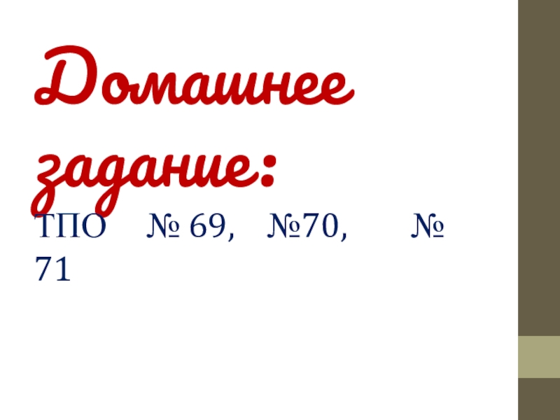 Слайд 16Домашнее задание: ТПО № 69, №70,