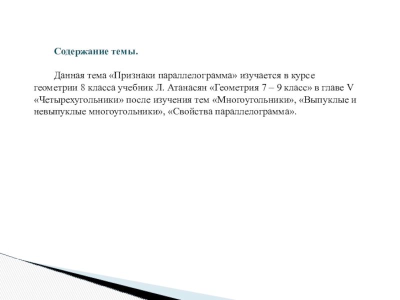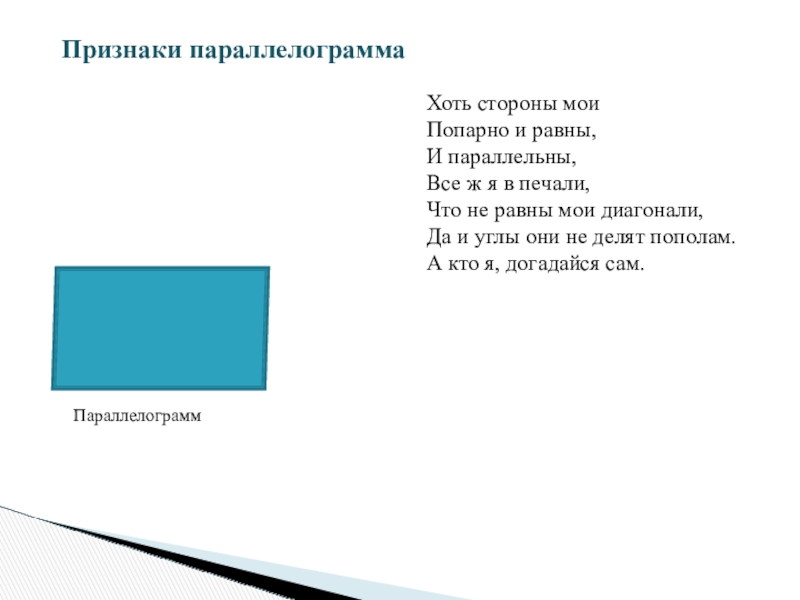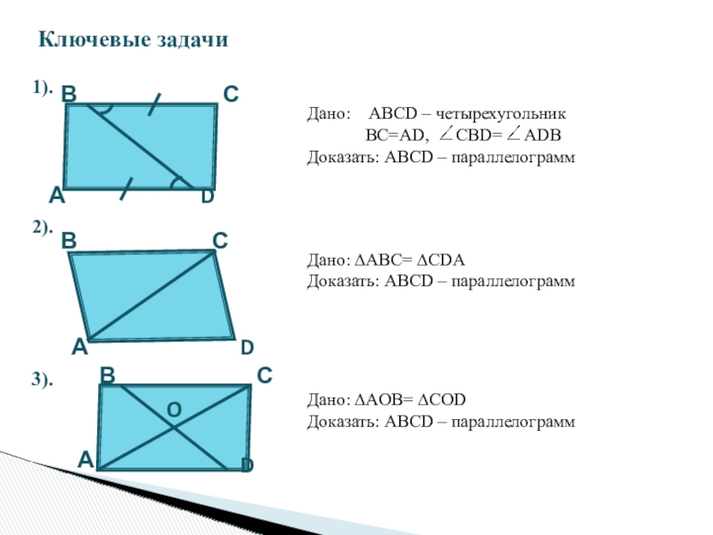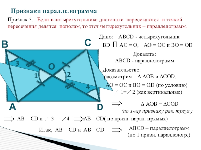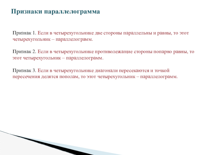 Признаки параллелограмма