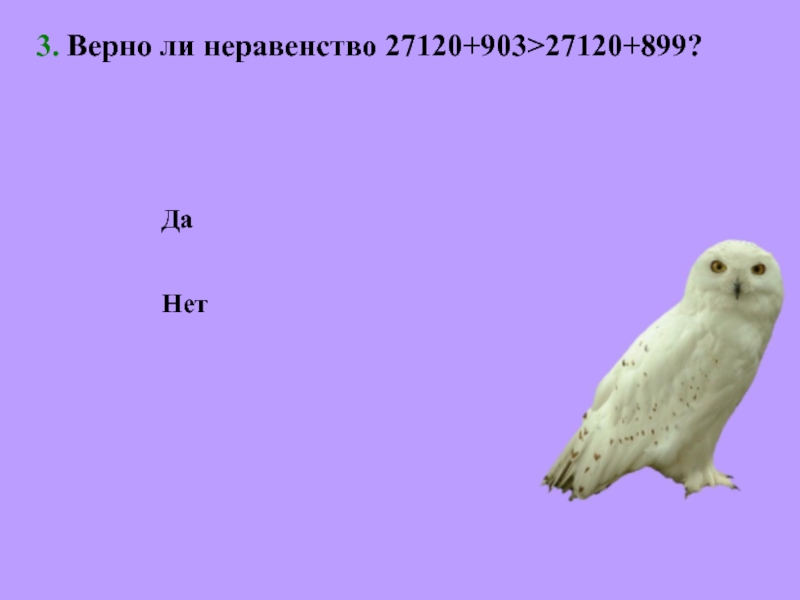 3. Верно ли неравенство 27120+903>27120+899? НетДа