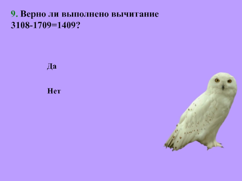 НетДа9. Верно ли выполнено вычитание          3108-1709=1409?