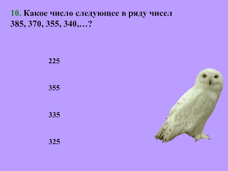 10. Какое число следующее в ряду чисел         385, 370,