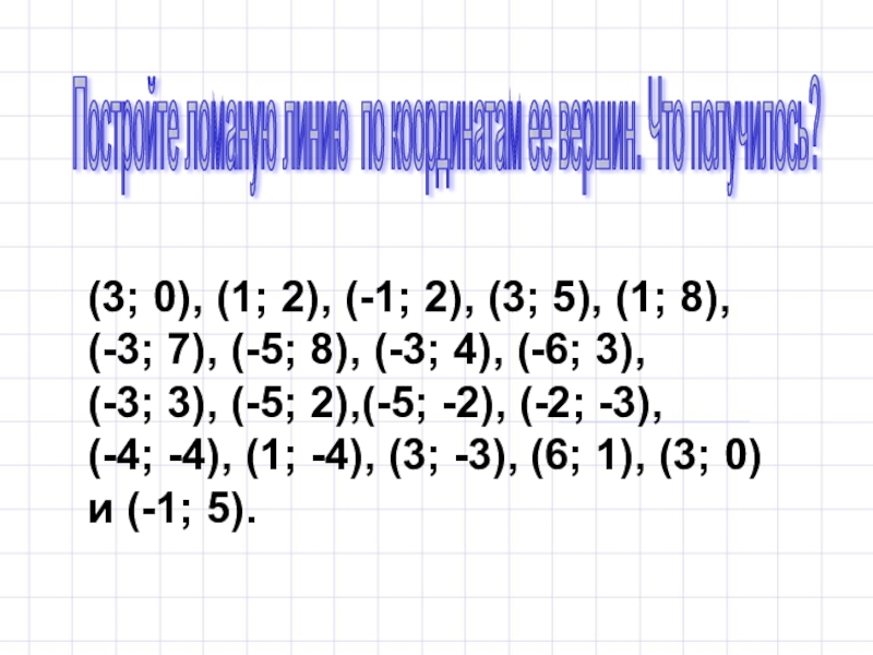 Постройте ломаную линию по координатам ее вершин. Что получилось?