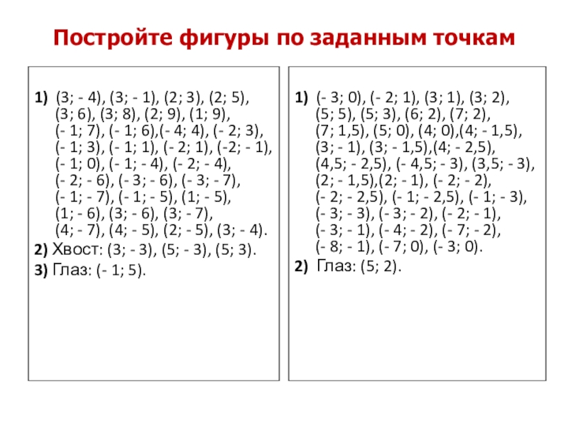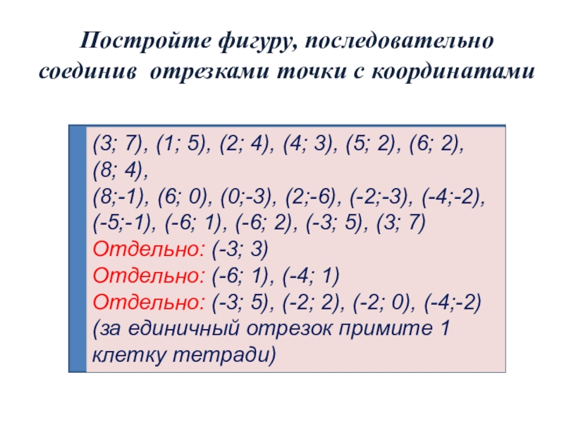 Постройте фигуру, последовательно соединив отрезками точки с координатами