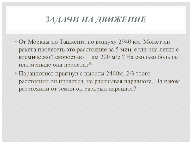 ЗАДАЧИ НА ДВИЖЕНИЕ