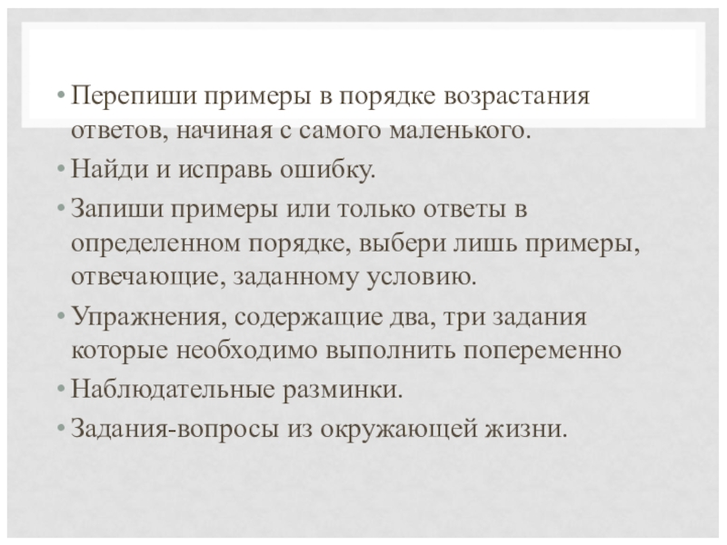 Слайд 14Перепиши примеры в порядке возрастания ответов, начиная с самого маленького.