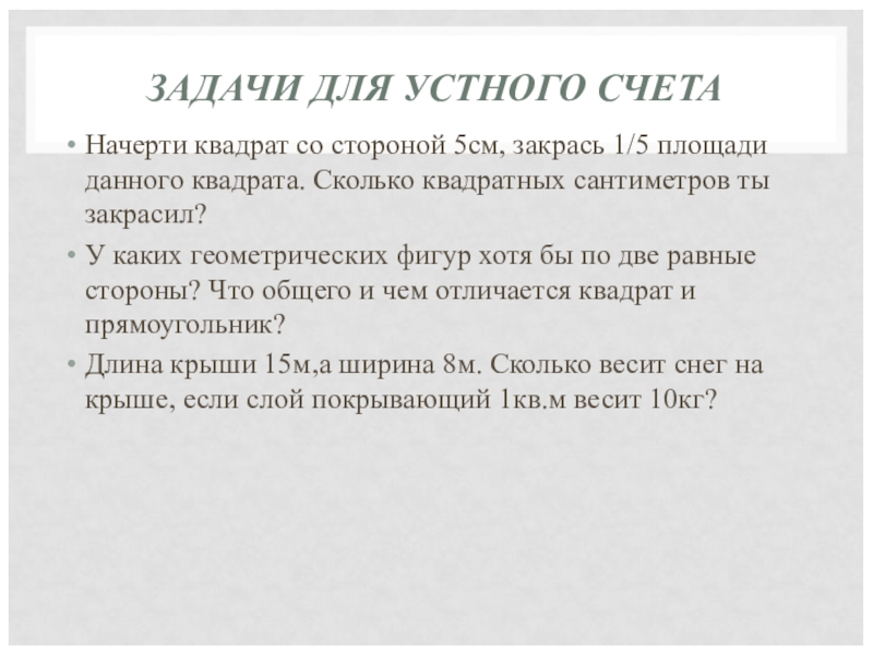 ЗАДАЧИ ДЛЯ УСТНОГО СЧЕТА