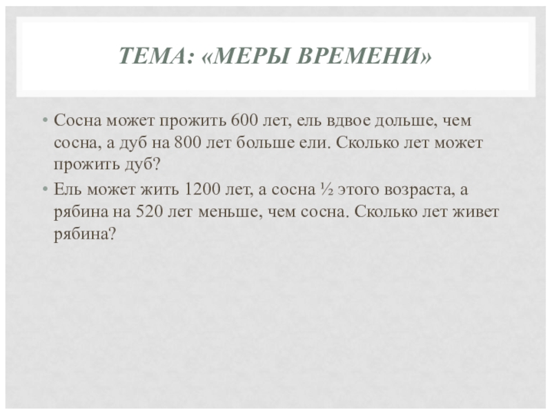 ТЕМА: «МЕРЫ ВРЕМЕНИ»