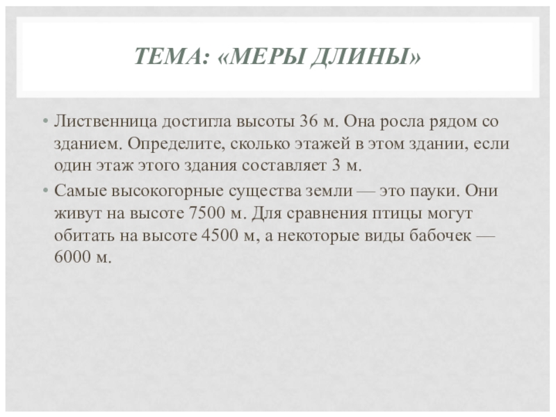 ТЕМА: «МЕРЫ ДЛИНЫ»