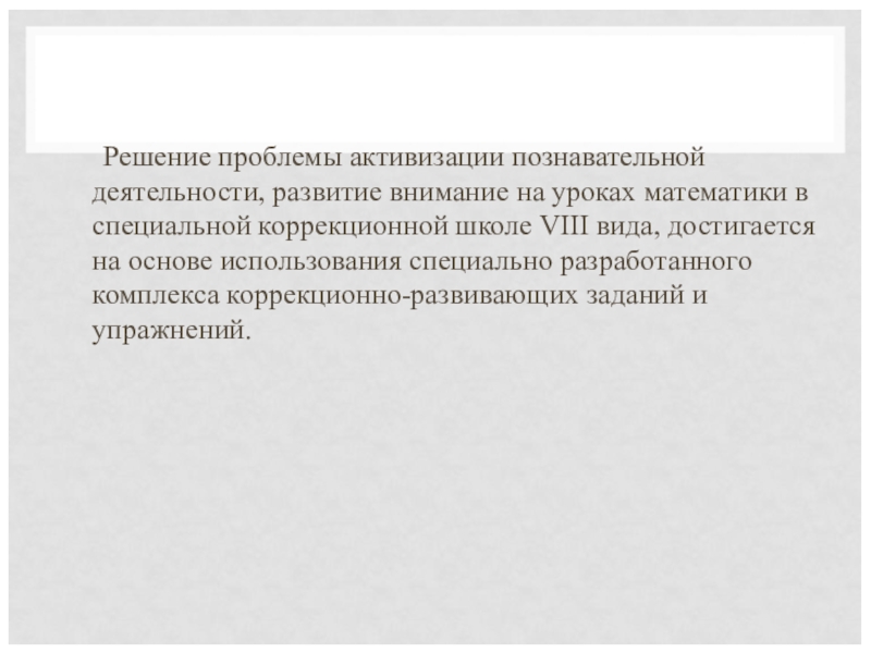 ПОЗНАВАТЕЛЬНОЙ ДЕЯТЕЛЬНОСТИ И РАЗВИТИЮ ВНИМАНИЯ НА УРОКАХ МАТЕМАТИКИ В КЛАССАХ VIII ВИДА»