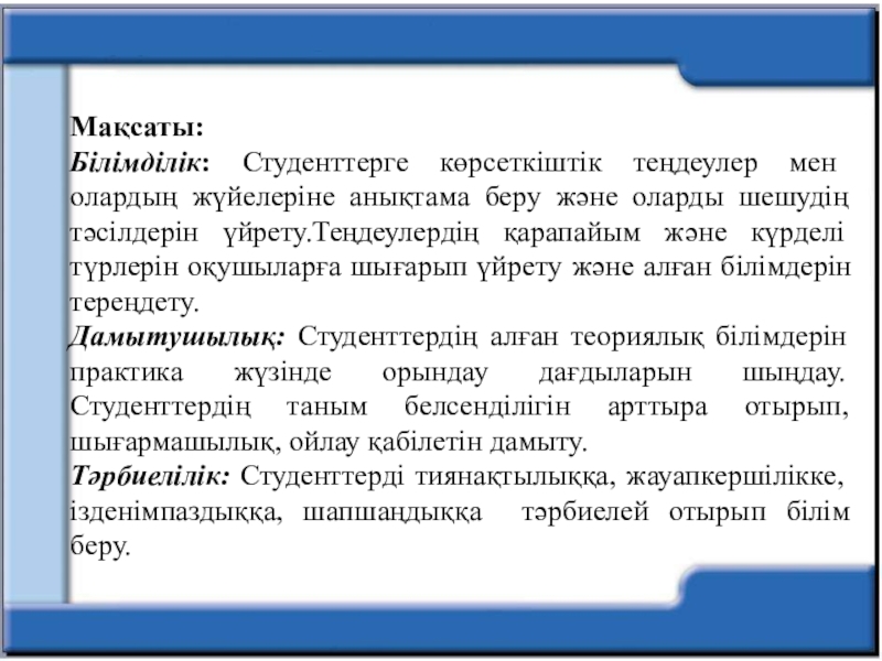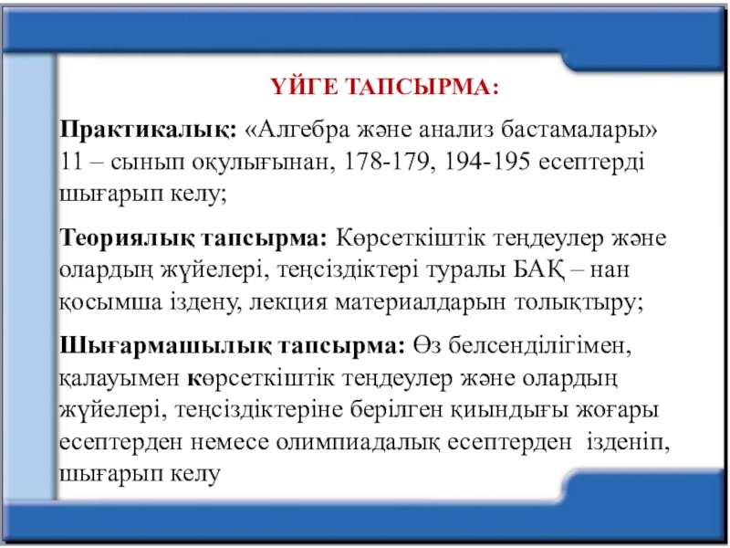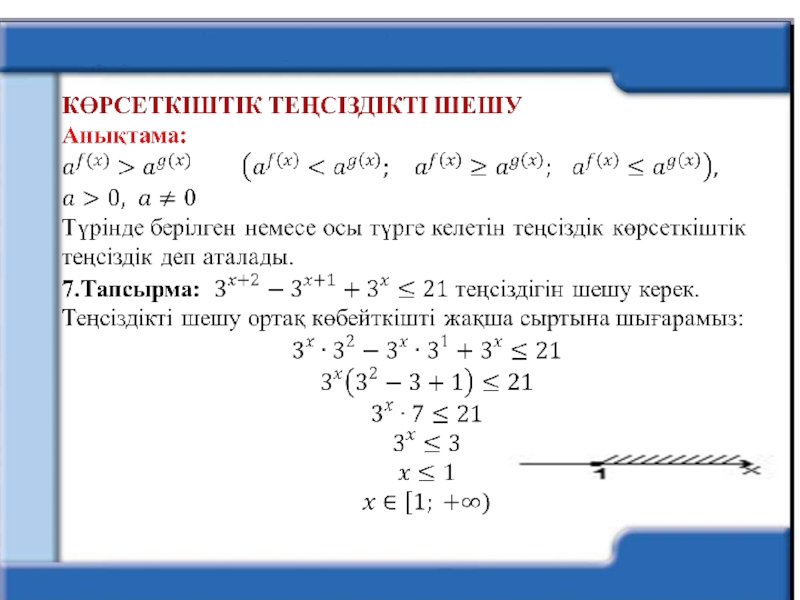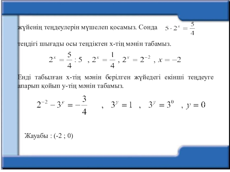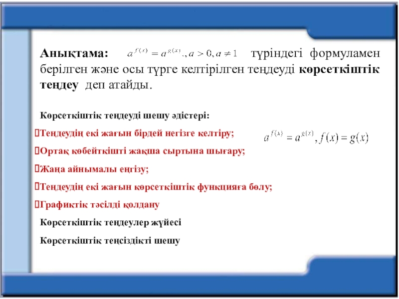 Теңдеудің екі жағын бірдей негізге келтіру;