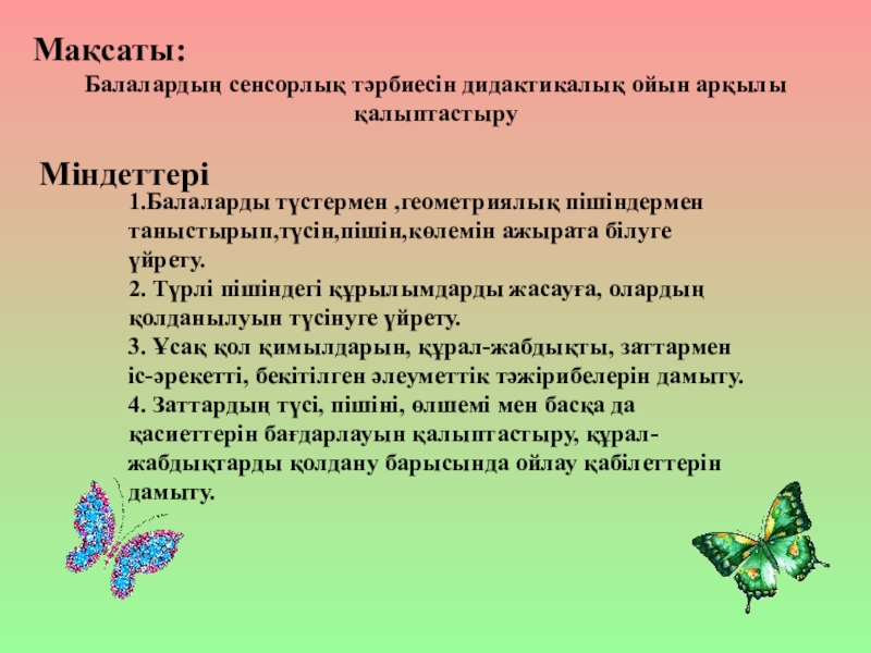 Кіші мектепке дейінгі балалардың сенсорлық тәрбиесін дидактикалық ойын арқылы жетілдіру
