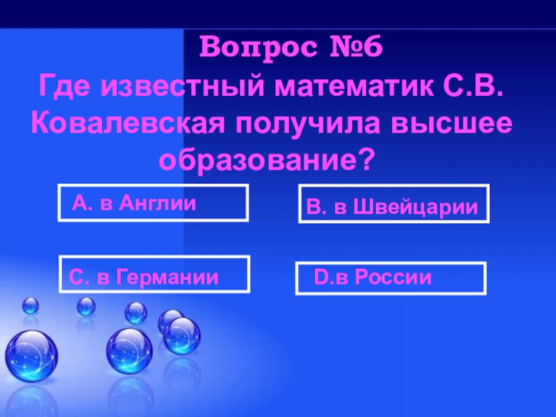 Где известный математик С.В.Ковалевская получила высшее образование?