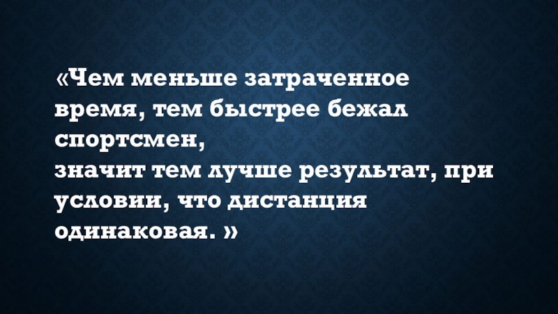 Слайд 5 «Чем меньше затраченное время, тем быстрее бежал спортсмен,