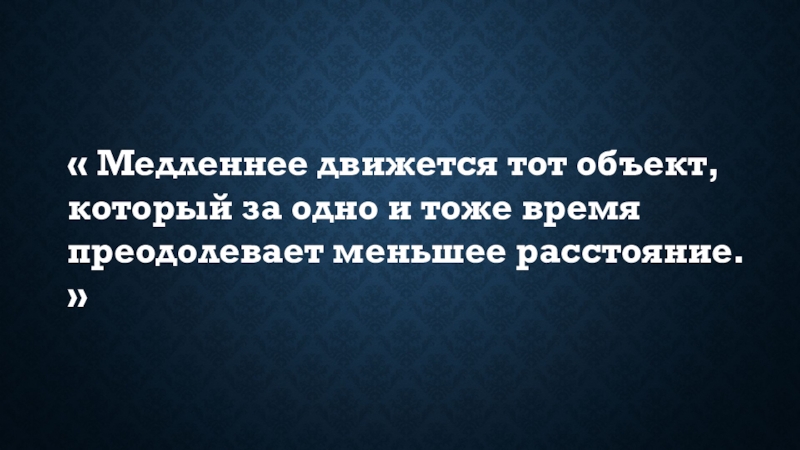 « Медленнее движется тот объект, который за одно и тоже время преодолевает меньшее расстояние. »