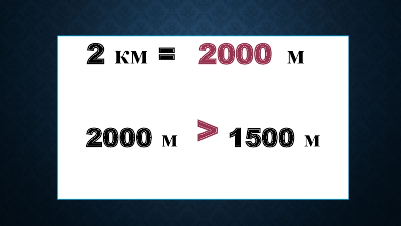 Слайд 72 км = м