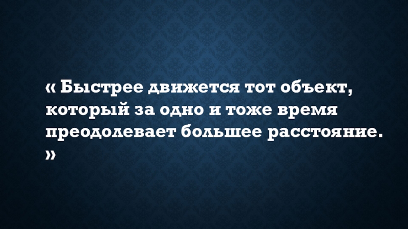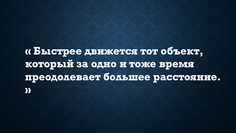 Слайд 6« Быстрее движется тот объект, который за одно и тоже время