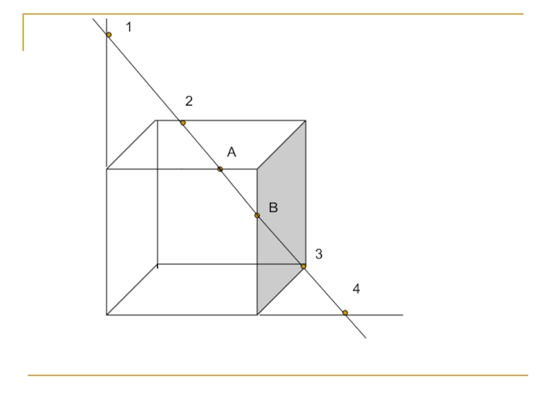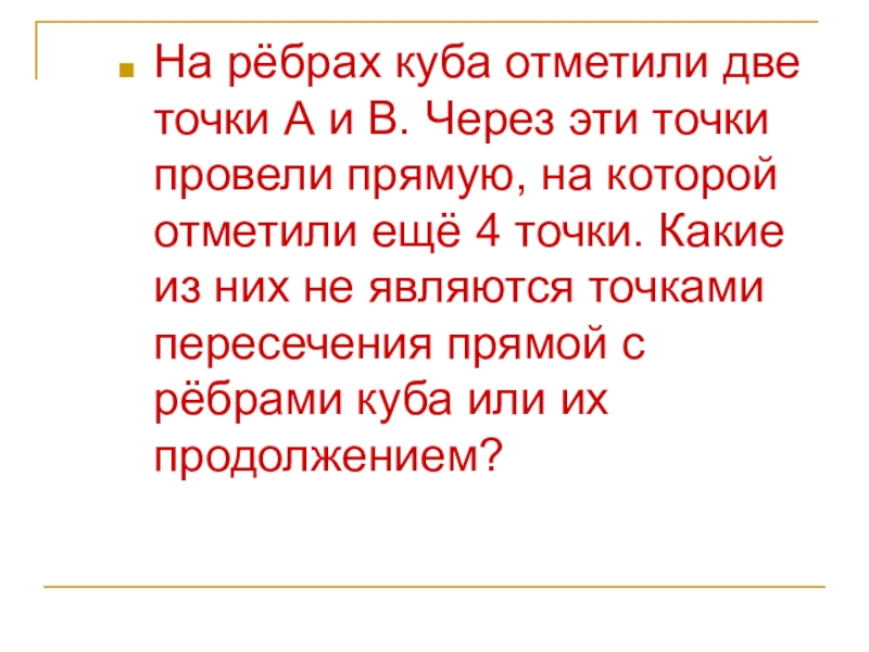 точки провели прямую, на которой отметили ещё 4 точки. Какие из них не являются точками пересечения прямой с рёбрами куба или их продолжением?
