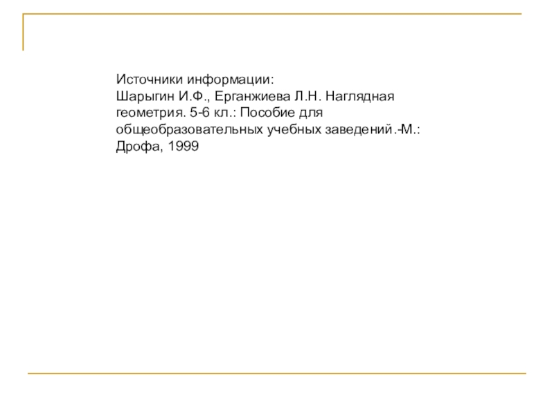 Источники информации:Шарыгин И.Ф., Ерганжиева Л.Н. Наглядная геометрия. 5-6 кл.: Пособие для общеобразовательных учебных заведений.-М.:Дрофа, 1999