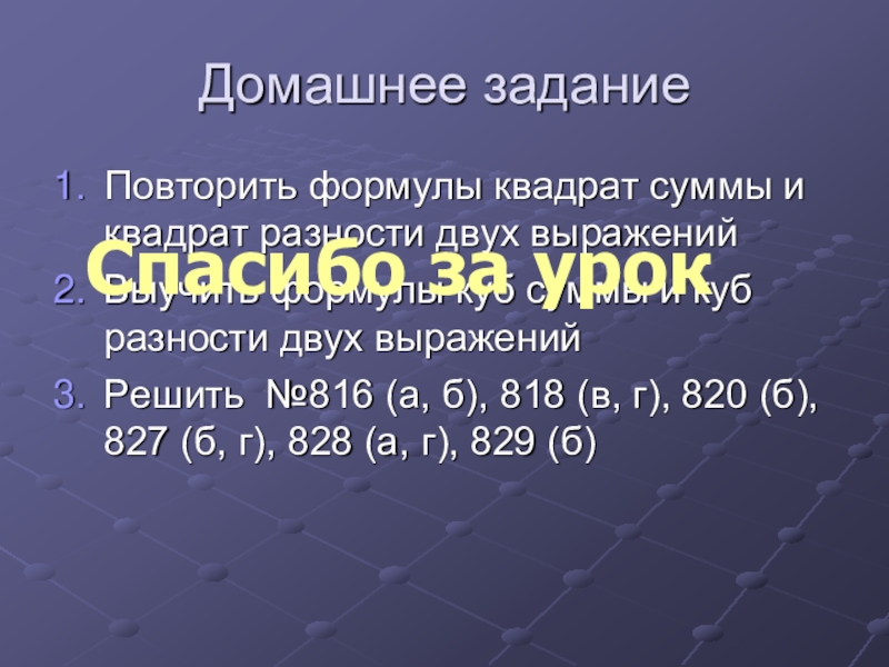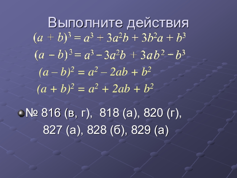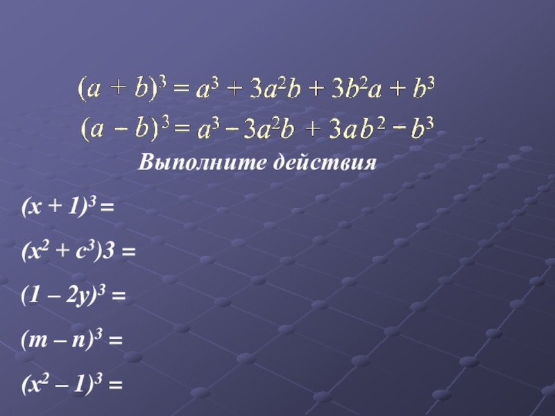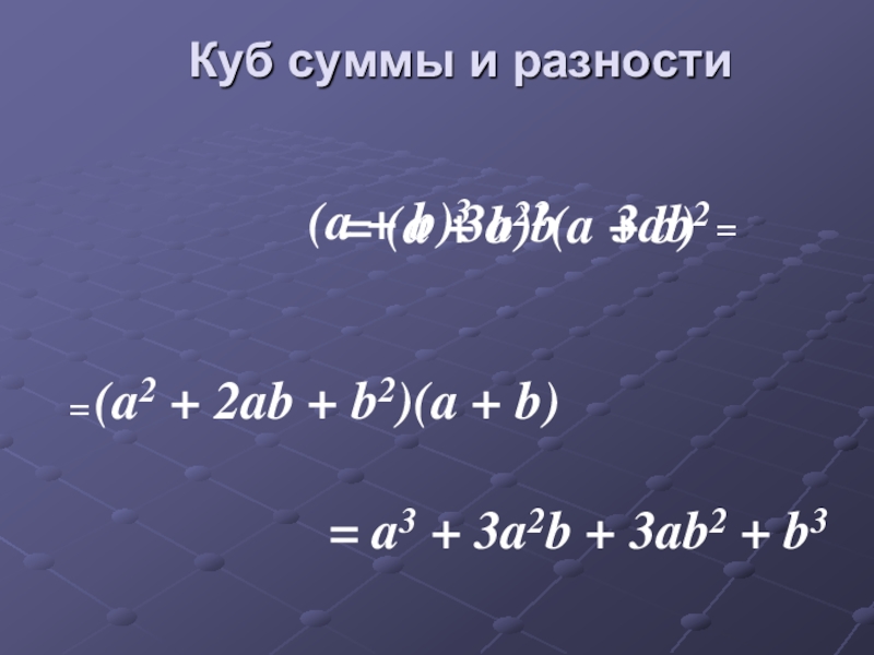 (a + b)3 = a3 + 3a2b + 3ab2 + b3