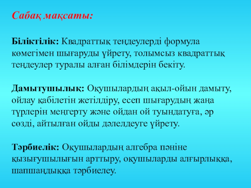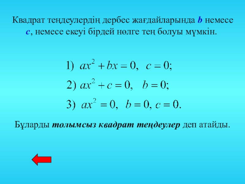 Бұларды толымсыз квадрат теңдеулер деп атайды.