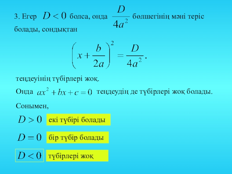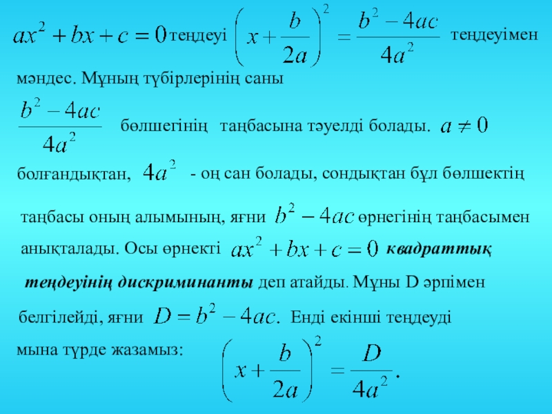 теңдеуінің дискриминанты деп атайды. Мұны D әрпімен