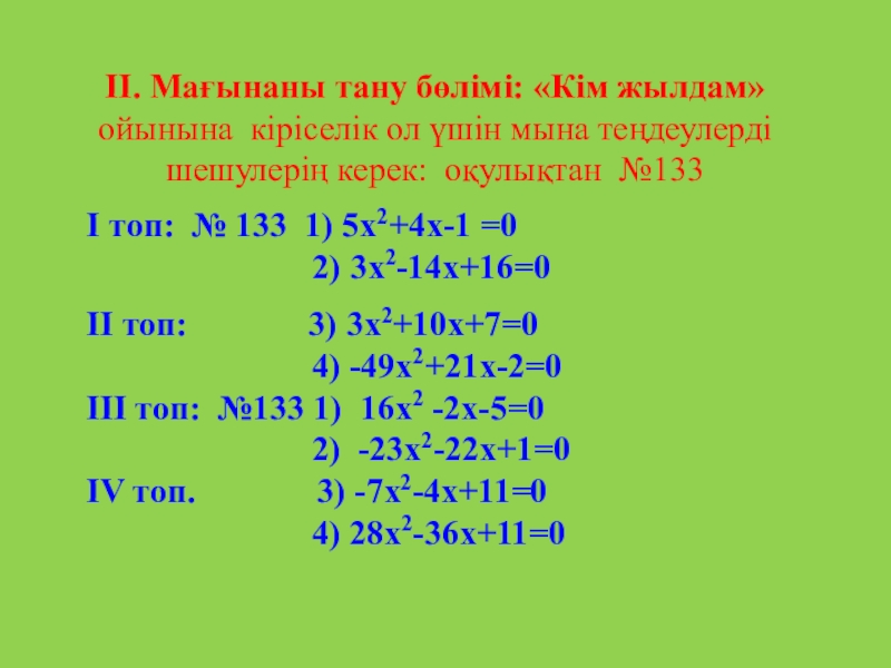 ІІІ топ: №133 1) 16x2 -2х-5=0