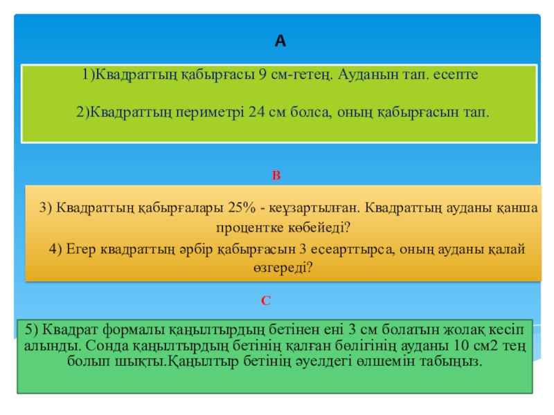4) Егер квадраттың әрбір қабырғасын 3 есеарттырса, оның ауданы қалай өзгереді?