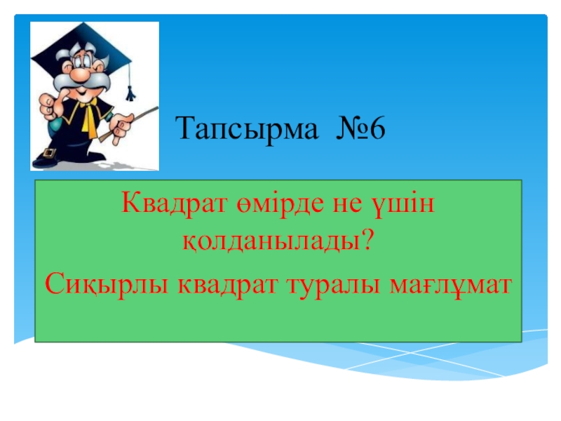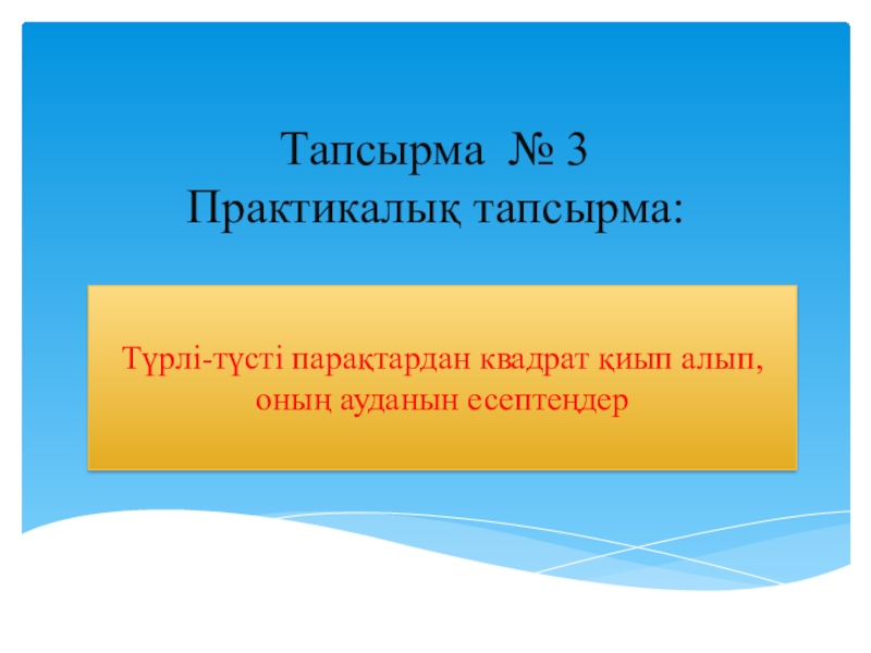 5) Квадрат формалы қаңылтырдың бетінен ені 3 см болатын жолақ кесіп алынды. Сонда қаңылтырдың бетінің қалған бөлігінің ауданы 10 см2 тең болып шықты.Қаңылтыр бетінің әуелдегі өлшемін табыңыз.