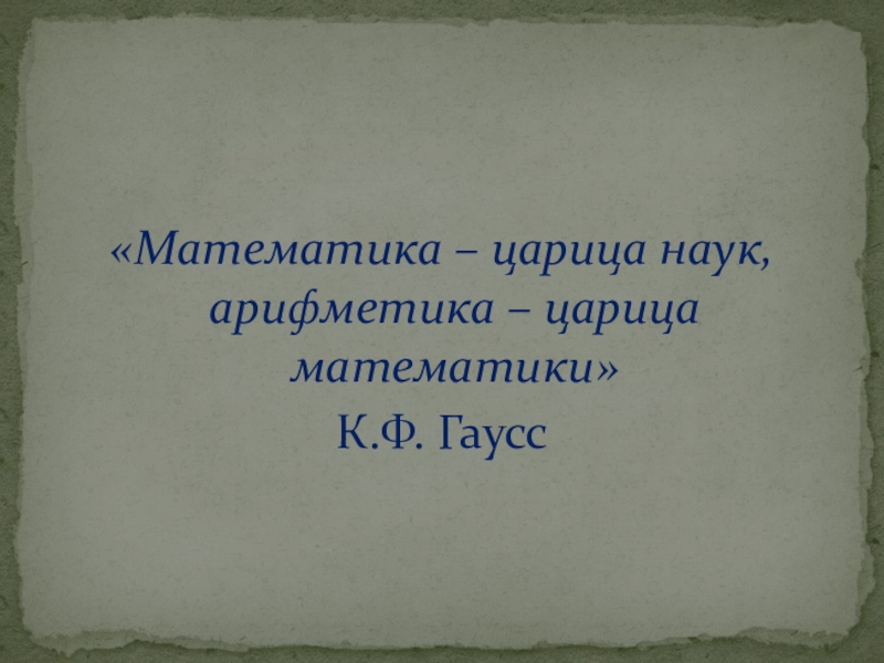 «Математика – царица наук, арифметика – царица математики» К.Ф. Гаусс
