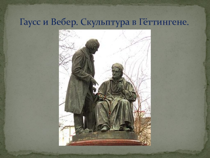 Слайд 7 Гаусс и Вебер. Скульптура в Гёттингене.