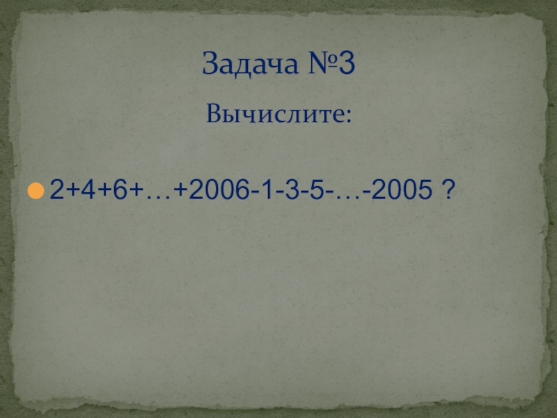 Вычислите:2+4+6+…+2006-1-3-5-…-2005 ? Задача №3