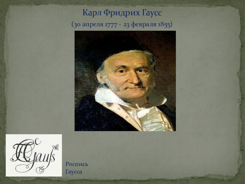 Карл Фридрих Гаусс(30 апреля 1777 - 23 февраля 1855) Роспись Гаусса