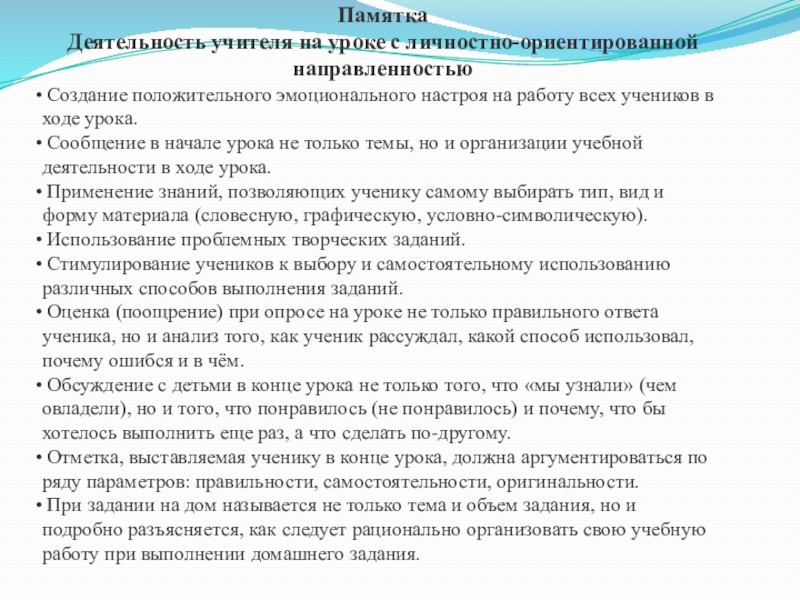 Деятельность учителя на уроке с личностно-ориентированной направленностью