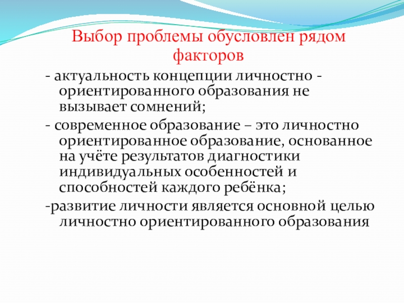 Слайд 5Выбор проблемы обусловлен рядом факторов