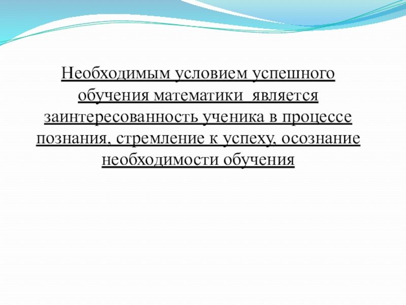 Слайд 3Необходимым условием успешного обучения математики является заинтересованность ученика в процессе познания,