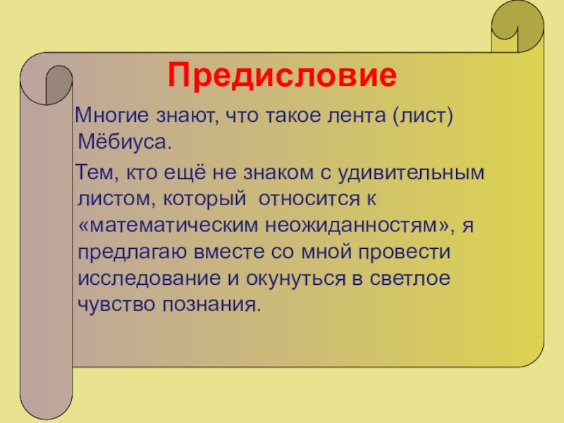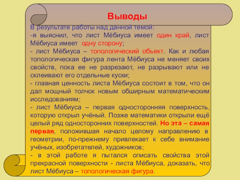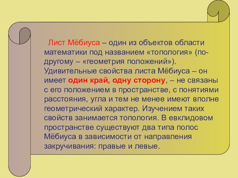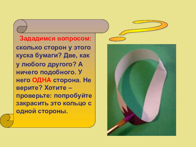 4. Показать удивительные свойства листа Мёбиуса и проверить их опытно - экспериментальным путем.