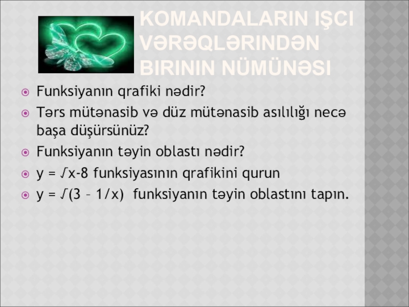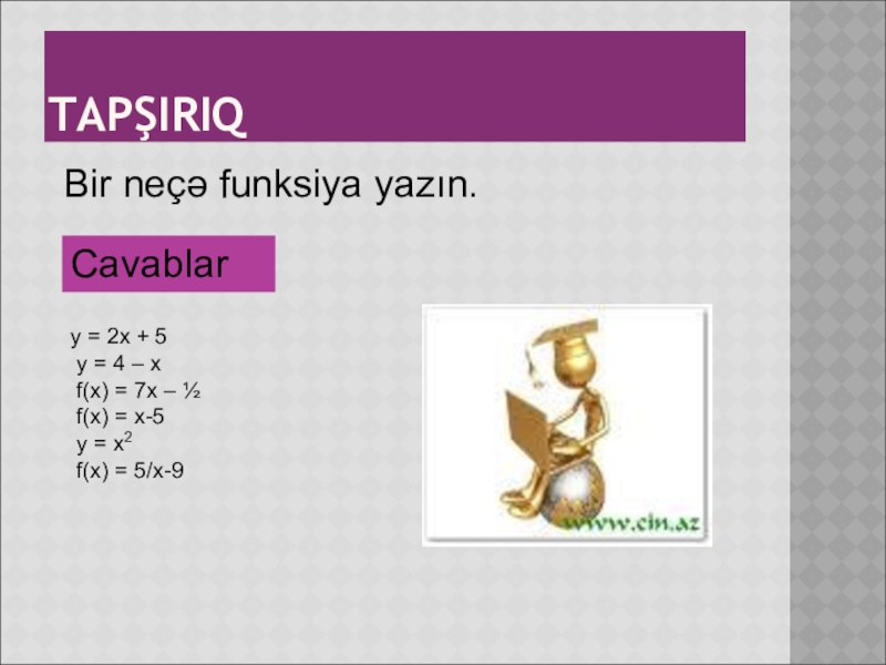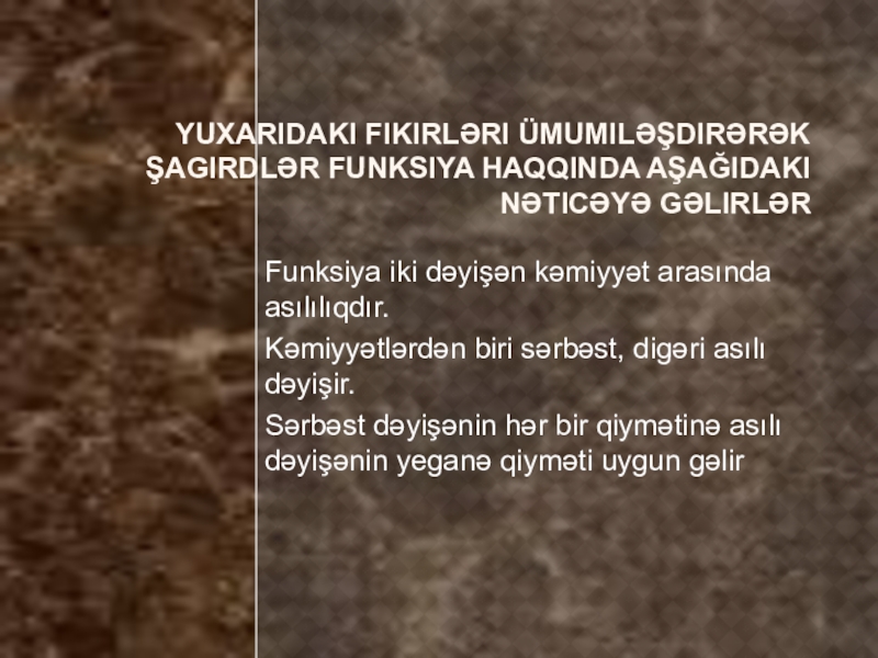 Funsiya ifadə etdiyi dəyişən kəmiyyətlər arasındakı asılılığı göstərir.