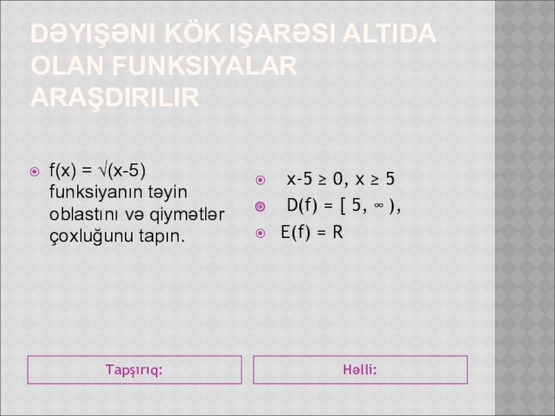 Sərbəst dəyişən istənilən qiyməti ala bilər. D(f) = R