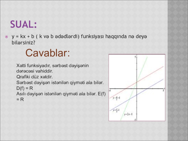 Xətti funksiyadır, sərbəst dəyişənin dərəcəsi vahiddir.