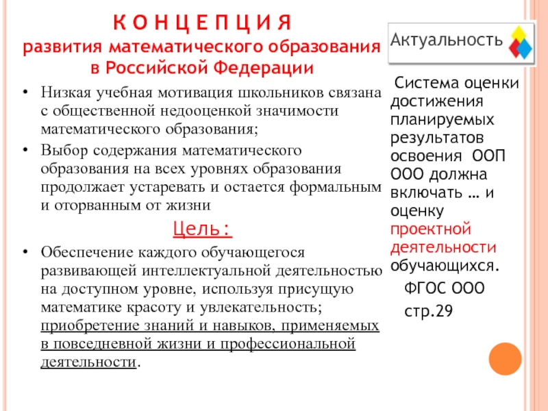 Низкая учебная мотивация школьников связана с общественной недооценкой значимости математического образования;