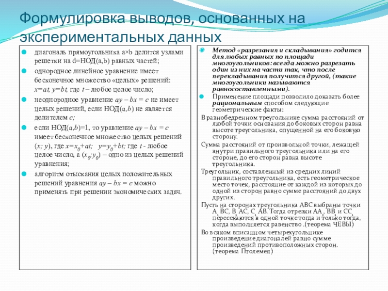 Применение площади позволило доказать более рациональным способом следующие геометрические факты: