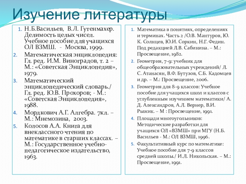 Математика в понятиях, определениях и терминах. Часть 2 /О.В. Мантуров, Ю.К. Солнцев, Ю.И. Соркин, Н.Г. Федин. Под редакцией Л.В. Сабинина. – М.: Просвещение, 1982.